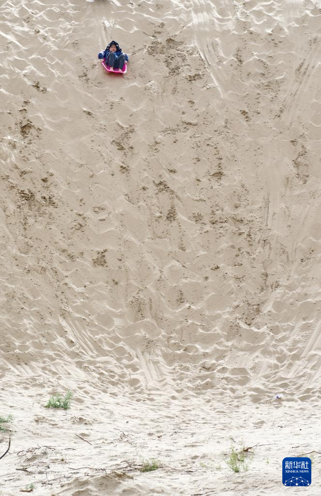 小朋友在扎囊國(guó)家沙漠公園里滑沙(7月30日攝)。新華社記者 張汝鋒 攝 ??