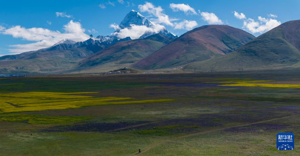 這是8月1日從帕里草原拍攝的卓木拉日雪山(無(wú)人機(jī)照片)。新華社記者 姜帆 攝 ??