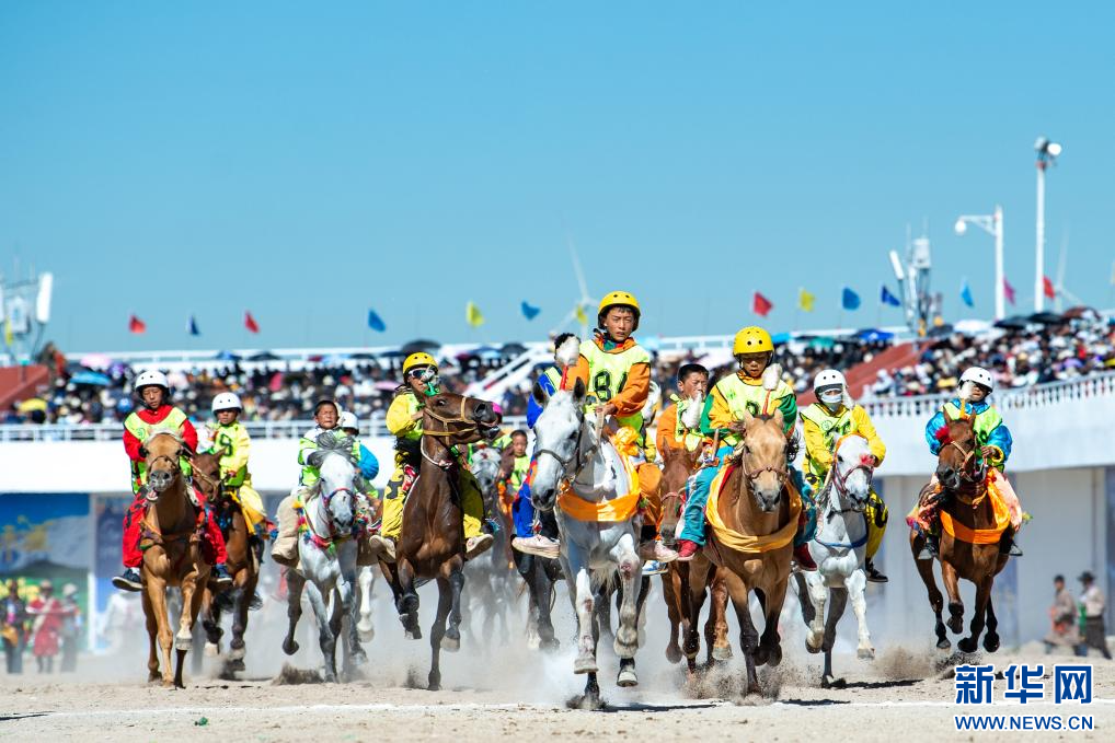 8月12日,騎手在傳統(tǒng)十公里大跑項目中角逐。 新華網(wǎng) 旦增努布 攝