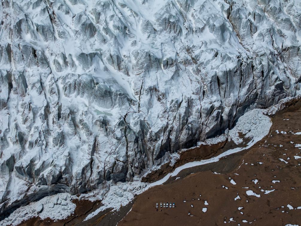 這是2024年5月在西藏自治區(qū)那曲市尼瑪縣拍攝的藏色崗日冰川(無人機照片)。新華社記者 姜帆 攝