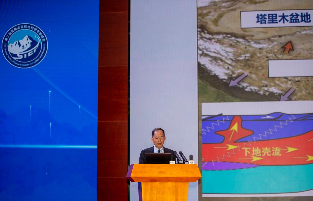 8月18日,第二次青藏科考隊隊長姚檀棟院士在拉薩對本次科考十大任務的重要成果進行集中發(fā)布。新華社記者 姜帆 攝
