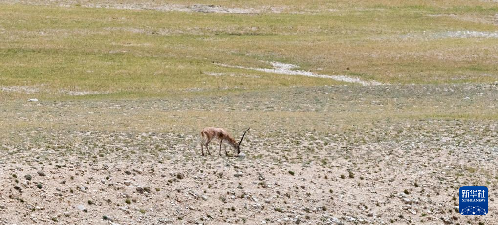 8月24日,一只公藏羚羊在雅魯藏布江源頭附近的草地上覓食。新華社記者 丁增尼達(dá) 攝
