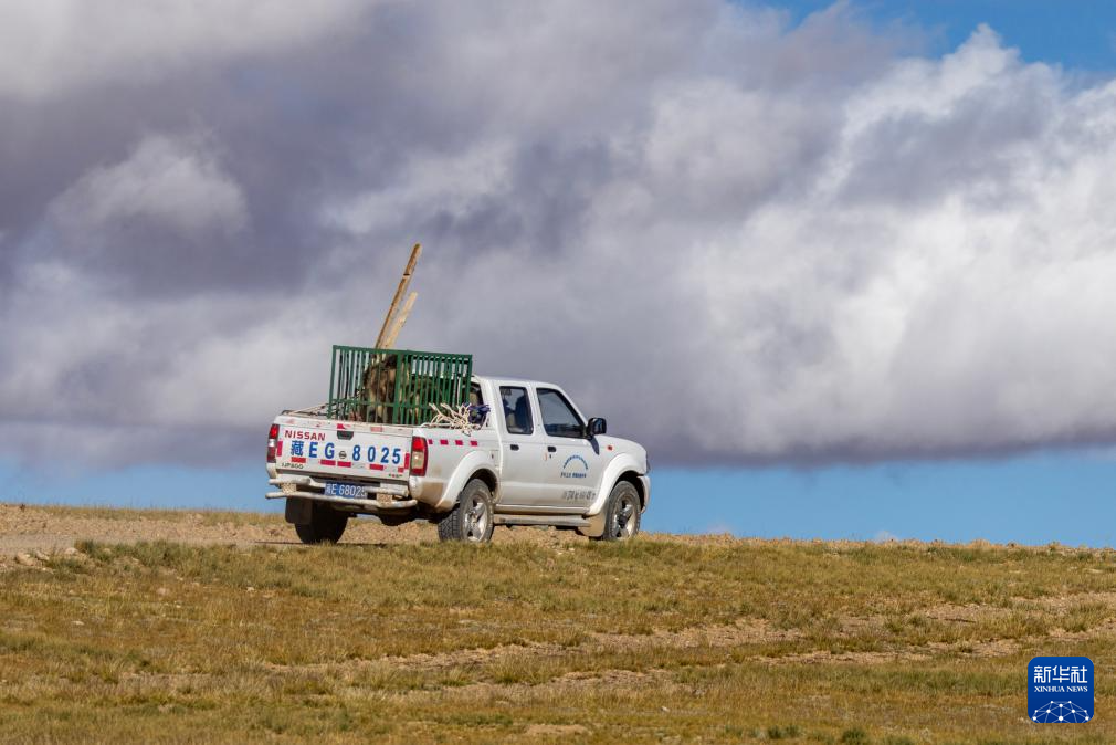 野保隊(duì)員將棕熊運(yùn)送至西藏那曲市尼瑪縣的羌塘國家級(jí)自然保護(hù)區(qū)核心區(qū)(8月30日攝)。新華社記者 姜帆 攝 ??