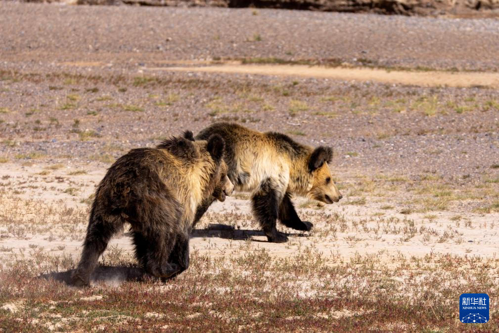 在西藏那曲市尼瑪縣的羌塘國家級(jí)自然保護(hù)區(qū)核心區(qū),被放歸的棕熊母子走向大自然(8月30日攝)。新華社記者 姜帆 攝