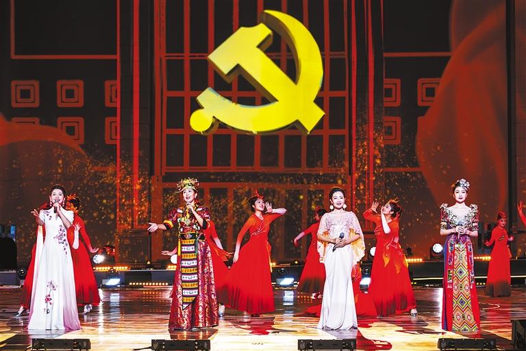 湖南、湖北、安徽三省和中糧集團對口支援山南以來,一批又一批援藏干部人才把山南當作第二故鄉(xiāng),與各族人民結(jié)下了跨越山海的深情厚誼。短片《只為你唱的歌》,展示援藏工作者背后的故事和家屬日常生活中的酸甜苦辣。情境合唱《追風趕月的人》,是一場為所有援藏工作者精心設(shè)計的特別演出,他們的家屬共同帶來了一首溫情之歌,送出了家屬們對援藏工作者的堅定支持和無盡的愛。女子群舞《格桑芙蓉并蒂開》,展現(xiàn)了湖南、山南兩地人民心手相牽的美好畫面。“唱支山歌給黨聽,我把黨來比母親……”山南市三小格桑花合唱團孩子們的聲音直抵人心,隨后湖南、湖北、安徽和山南的歌手們共同唱響《唱支山歌給黨聽》。