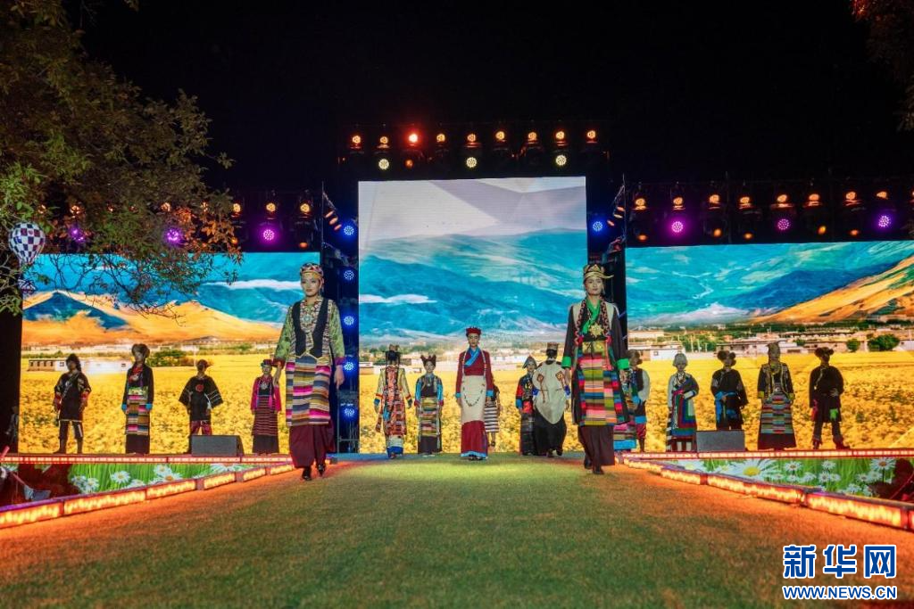 24日,西藏山南市加查縣舉辦“魅力達(dá)布·印象綻放”民族服飾秀活動(dòng)。色彩斑斕的民族服飾在現(xiàn)場雨珠與燈光的點(diǎn)綴下,更顯生動(dòng)與靚麗。