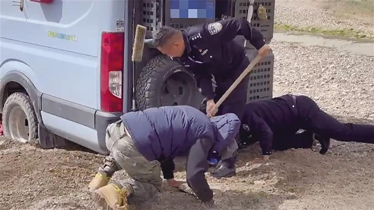“在最絕望的時候,我第一時間想到撥打110?!睏钕壬鷵艽驁缶娫挍]一會兒,一輛警車趕來,此時的楊先生,既高興又擔(dān)憂,高興的是終于看到了希望,擔(dān)憂的是害怕受到民警的批評教育。而令他沒想到的是,兩名民警下車的第一件事不是批評教育他,而是擼起袖子、拿起鐵鍬,努力挖掘汽車周邊的泥土。