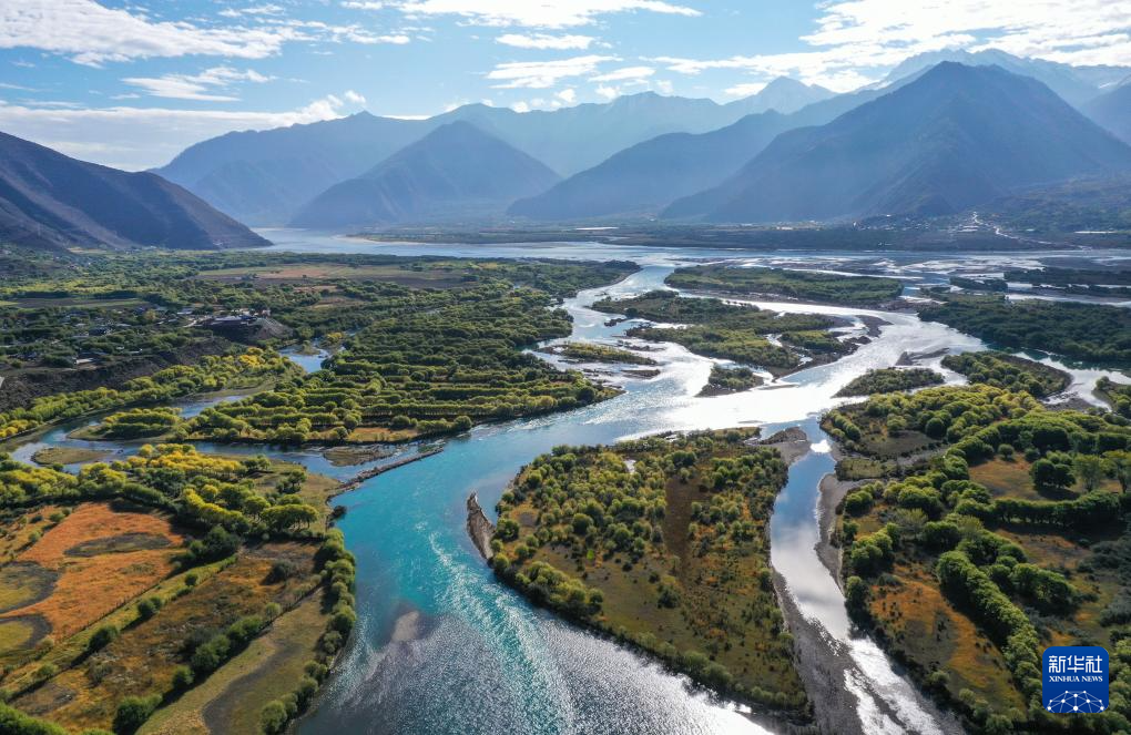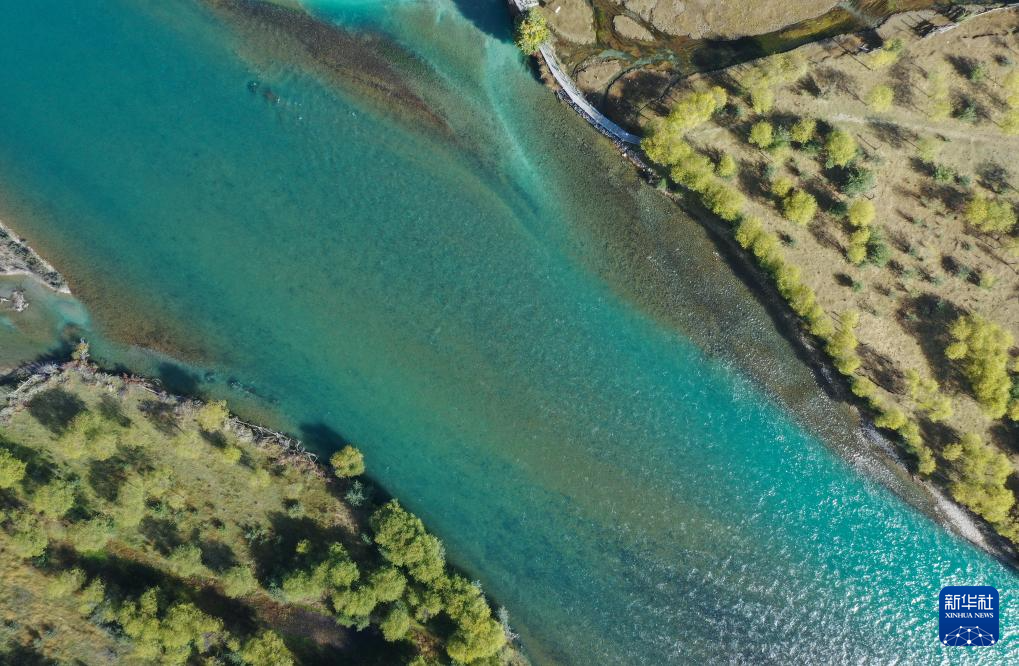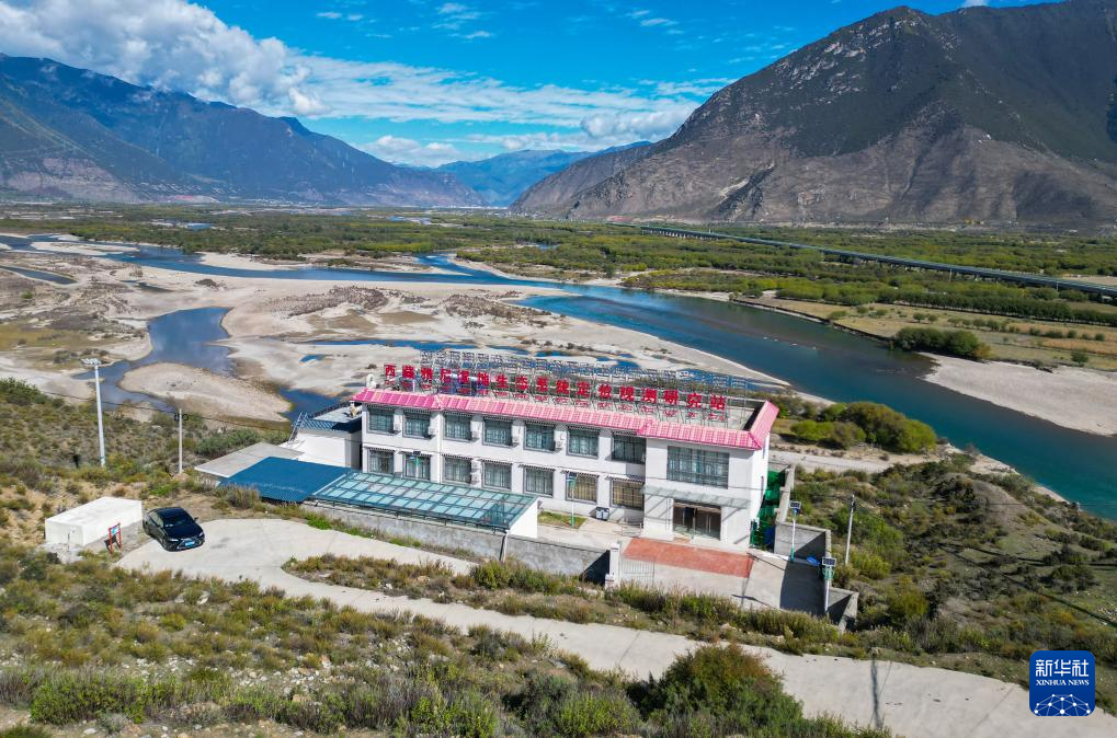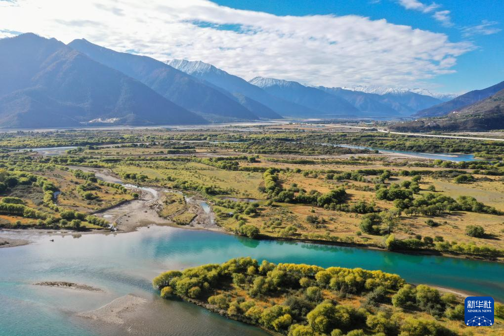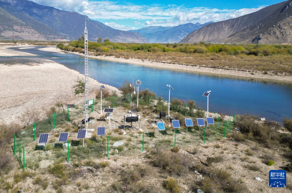 這是在林芝雅尼國家濕地公園尼洋河畔拍攝的生態(tài)監(jiān)測系統(tǒng)(10月24日攝,無人機(jī)照片)。新華社記者 劉天宇 攝??