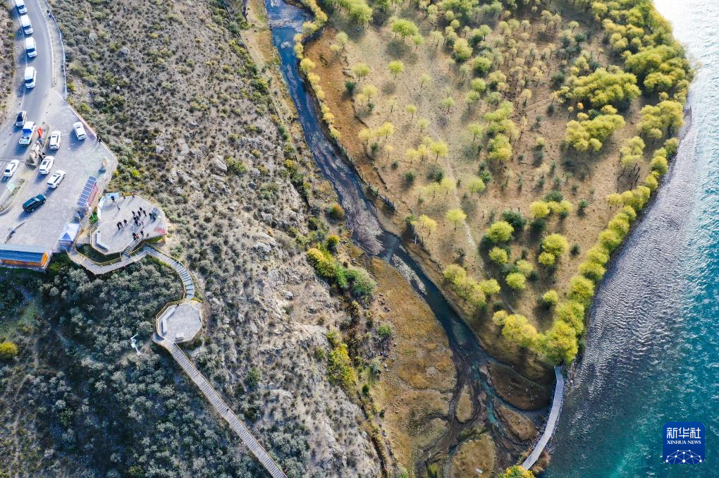 西藏林芝雅尼國家濕地公園內(nèi)的觀景臺和步行棧道(10月24日攝,無人機(jī)照片)。新華社記者 李賀 攝??