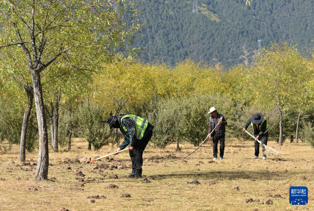 在西藏林芝雅尼國家濕地公園內(nèi),濕地管護(hù)隊員們進(jìn)行每日的例行清理維護(hù)(10月24日攝)。新華社記者 李賀 攝??