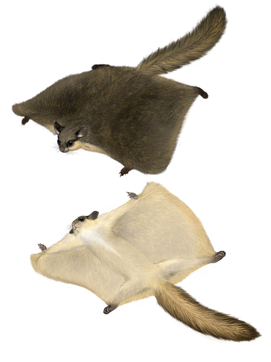 論文第一作者、中國科學(xué)院昆明動物研究所副研究員李權(quán)介紹,松鼠依據(jù)生活型分成了樹松鼠、地松鼠和飛松鼠三類。飛松鼠在漢語中被稱為鼯鼠(大體型)或飛鼠(小體型)?;涗涳@示飛松鼠起源于歐洲或北美洲,在獲得了滑翔能力后,飛松鼠與系統(tǒng)發(fā)育位置相似的其他松鼠“親戚”相比分布范圍和多樣性都得到了顯著提升,廣布于歐亞大陸和北美洲的多種森林地帶,體重從13.5克到超過2千克不等。