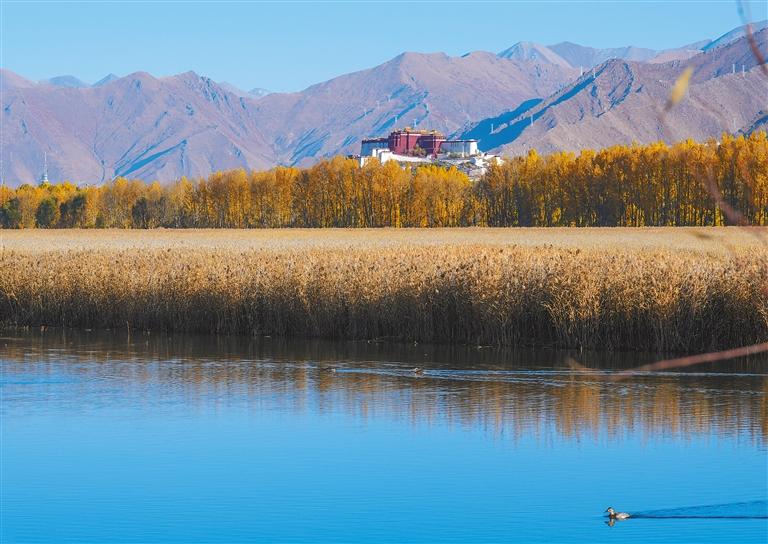 立冬時(shí)節(jié),被稱為“拉薩之肺”的拉薩市拉魯濕地國(guó)家級(jí)自然保護(hù)區(qū)景色依舊。草木盡染,水天相映,與遠(yuǎn)處的城市建筑共同構(gòu)成一幅美麗的生態(tài)畫(huà)卷。拉魯濕地是世界上海拔最高、面積最大的城市天然濕地,是拉薩市氧氣的主要補(bǔ)給源。