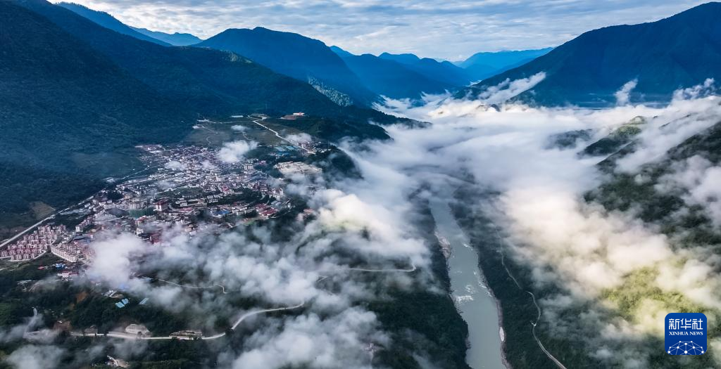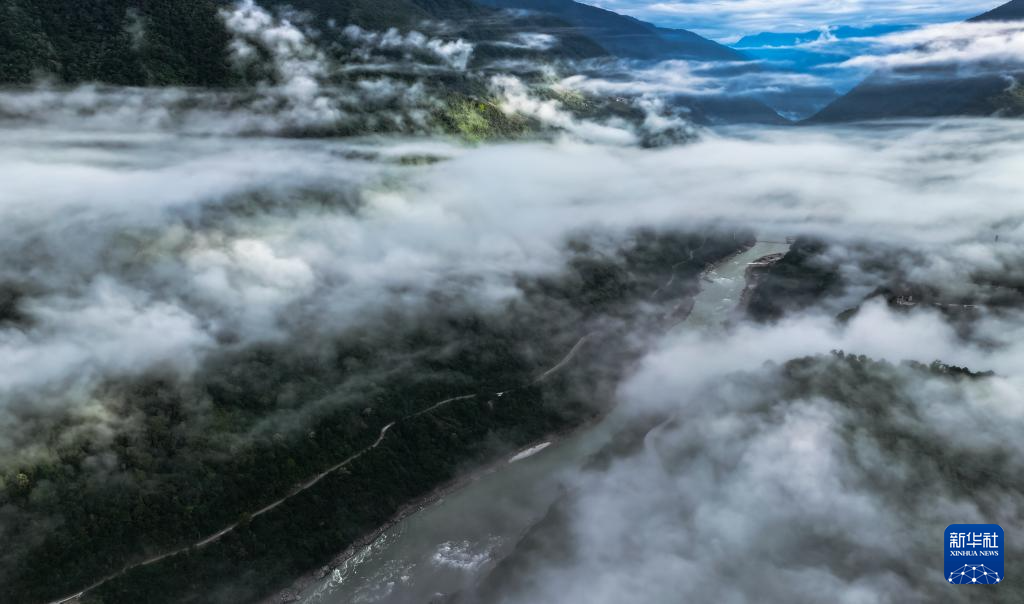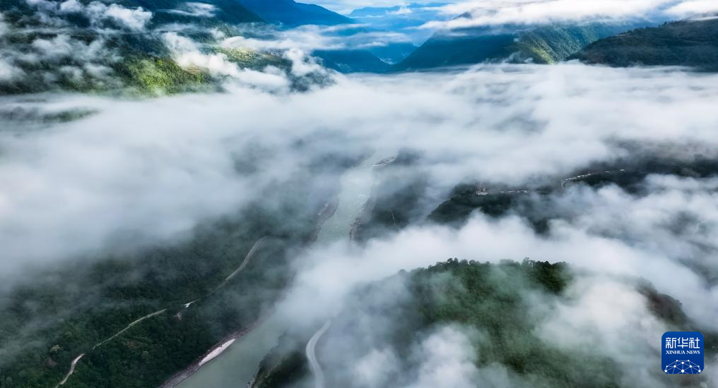 這是11月11日拍攝的墨脫縣云海景觀(無人機照片)。新華社記者 普布次仁 攝?