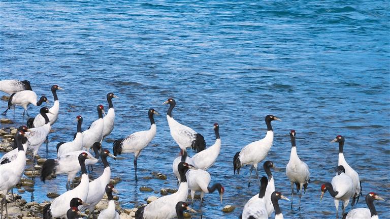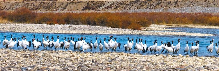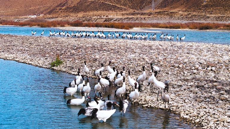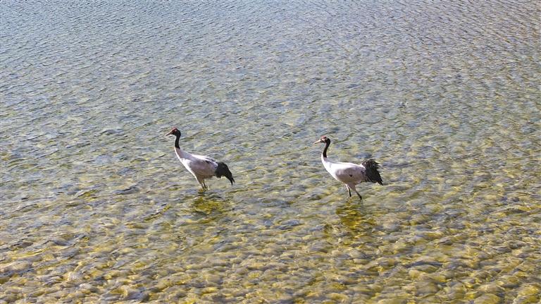 本版圖片均為黑頸鶴在墨竹工卡境內棲息的場景。