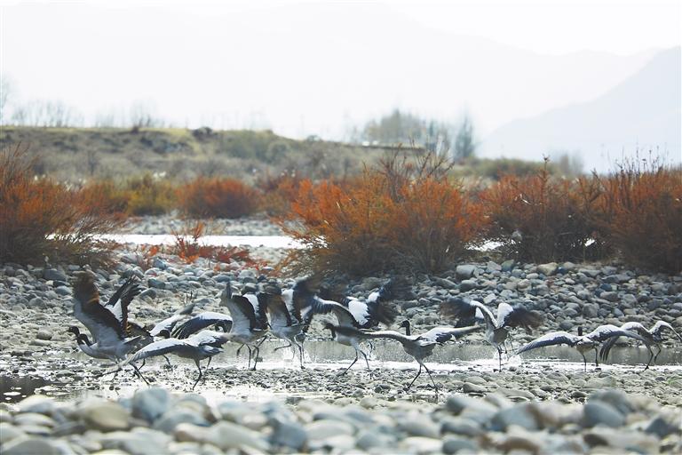 如今,一批又一批黑頸鶴從四川、青海等地啟程,歷經近千公里的長途跋涉,紛紛抵達西藏各越冬地,開啟他們的越冬生活。