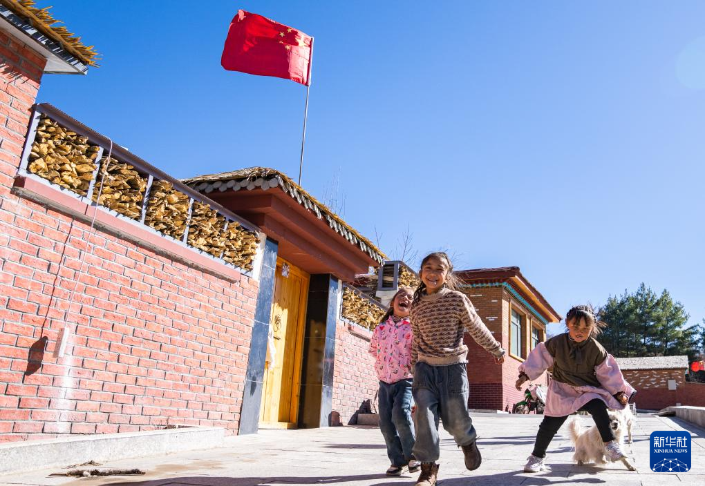 12月15日,達曼新村的孩子們在玩耍。新華社記者 丁增尼達 攝 ??