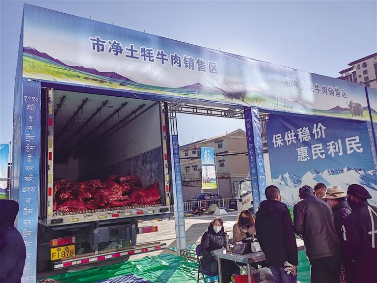 除了拉薩市納金綜合批發(fā)市場設有惠民牦牛肉銷售點外,當雄縣也設立了一個惠民牦牛肉銷售點位。據(jù)當雄縣凈土產業(yè)投資開發(fā)有限公司副總經(jīng)理陳繪如介紹,自惠民牦牛肉活動啟動以來,他們兩天便賣了約6000斤惠民牦牛肉。市民的需求量還是可以的,但與往年相比,銷售量還是差一些。