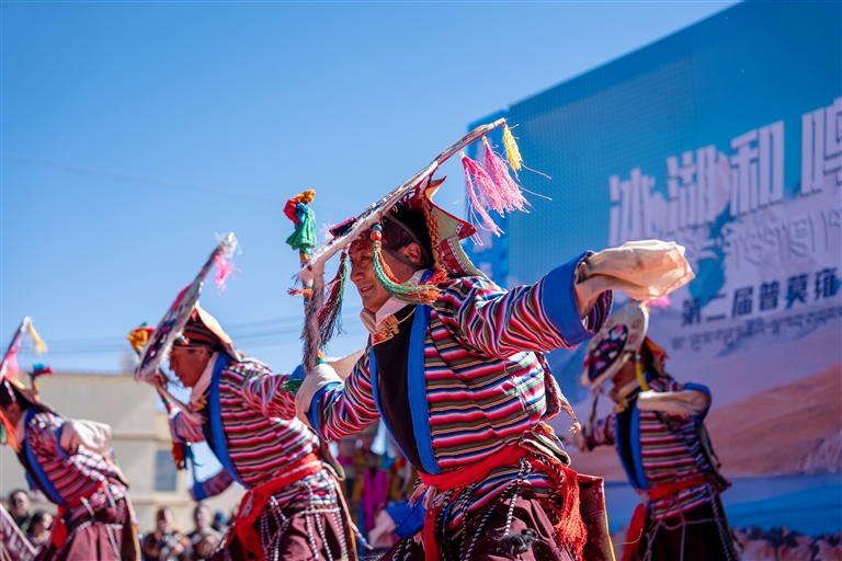 活動(dòng)在浪卡子縣打隆鎮(zhèn)推瓦村舉辦。普莫雍錯(cuò)冬季封凍后,會(huì)形成如夢(mèng)如幻的幽藍(lán)冰面,因此被贊譽(yù)為“中國(guó)貝加爾湖”。每年2月前后,當(dāng)湖面完全冰封,推瓦村村民便會(huì)集結(jié)羊群,趕著它們踏上冰面,前往湖心島過冬,這一延續(xù)千年的冰上趕羊傳統(tǒng),承載著深厚的歷史文化底蘊(yùn)。