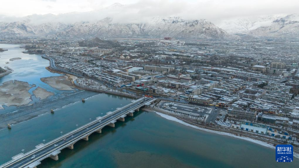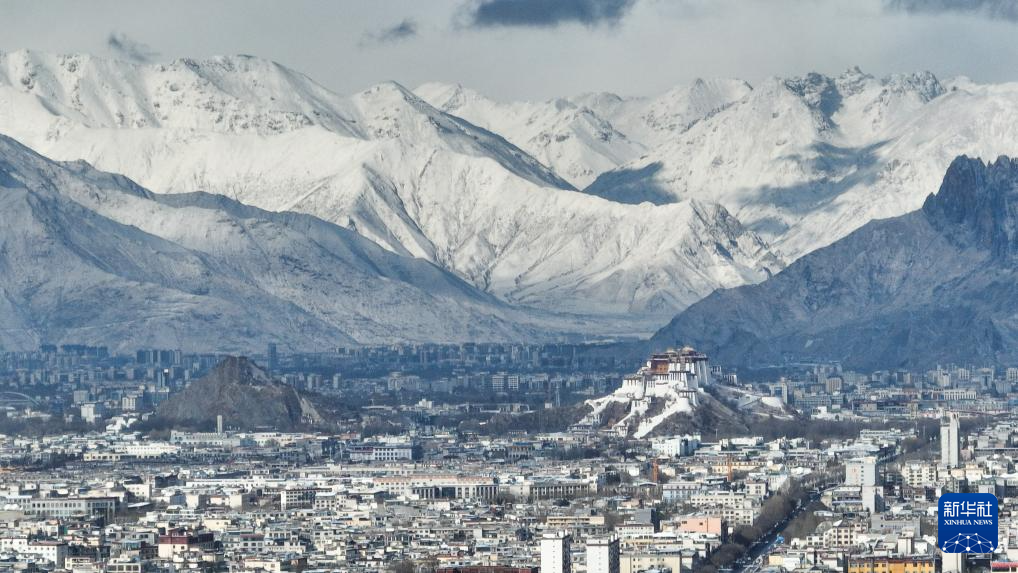 這是2月16日拍攝的降雪后的拉薩市區(qū)(無人機照片)。新華社記者 晉美多吉 攝