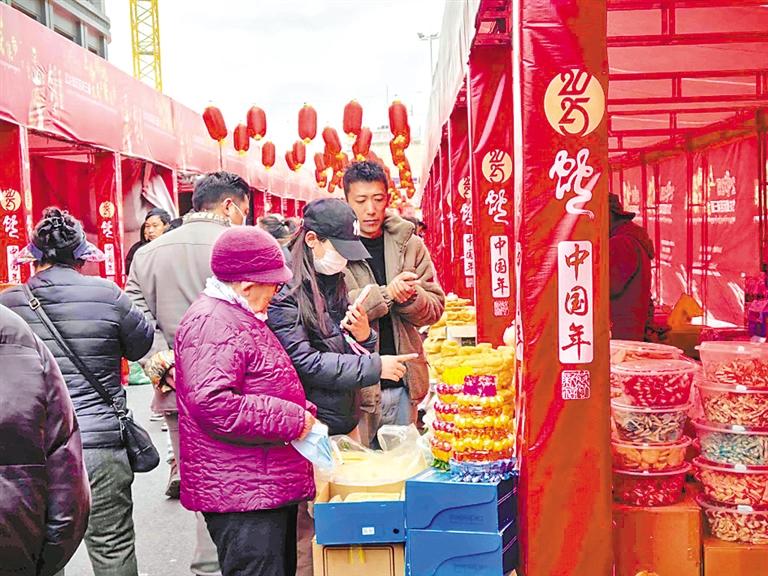 近日,拉薩市堆龍德慶區(qū)第三屆“上谷福地·吉慶年貨集市”開幕。集市上既有堆龍本土企業(yè)和合作社帶來的藏歷新年年貨、農(nóng)畜加工產(chǎn)品、民族手工藝品、傳統(tǒng)服飾,還有來自山南錯那市相關(guān)企業(yè)帶來的特色產(chǎn)品。此次活動共有118戶商戶參加,商品種類達(dá)百余種。 圖為市民正在購買“德嘎”。記者 拉巴桑姆 攝
