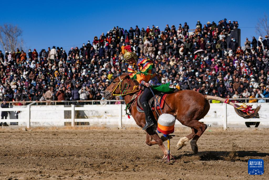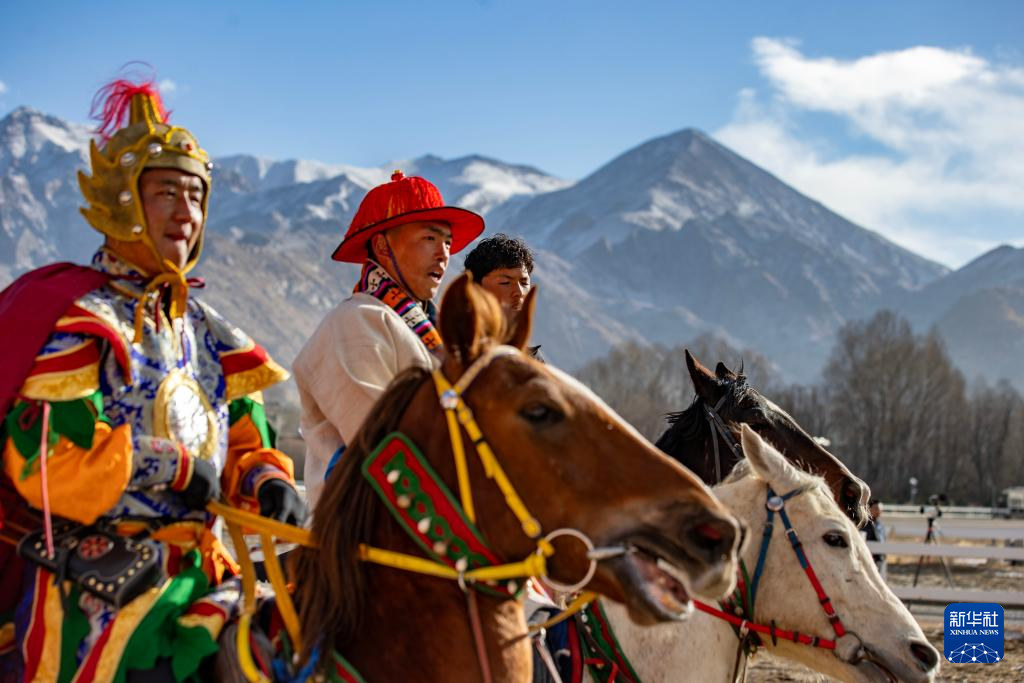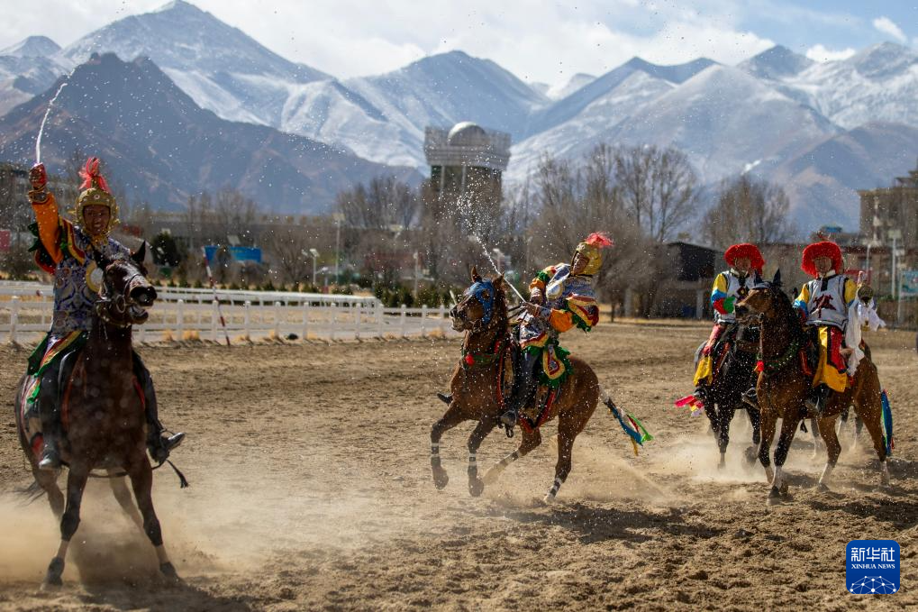 3月2日,馬術隊員在重現(xiàn)馬球比賽場景。新華社記者 晉美多吉 攝