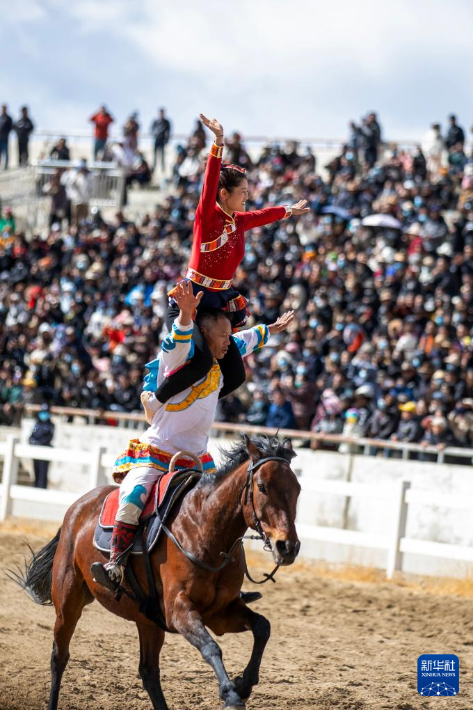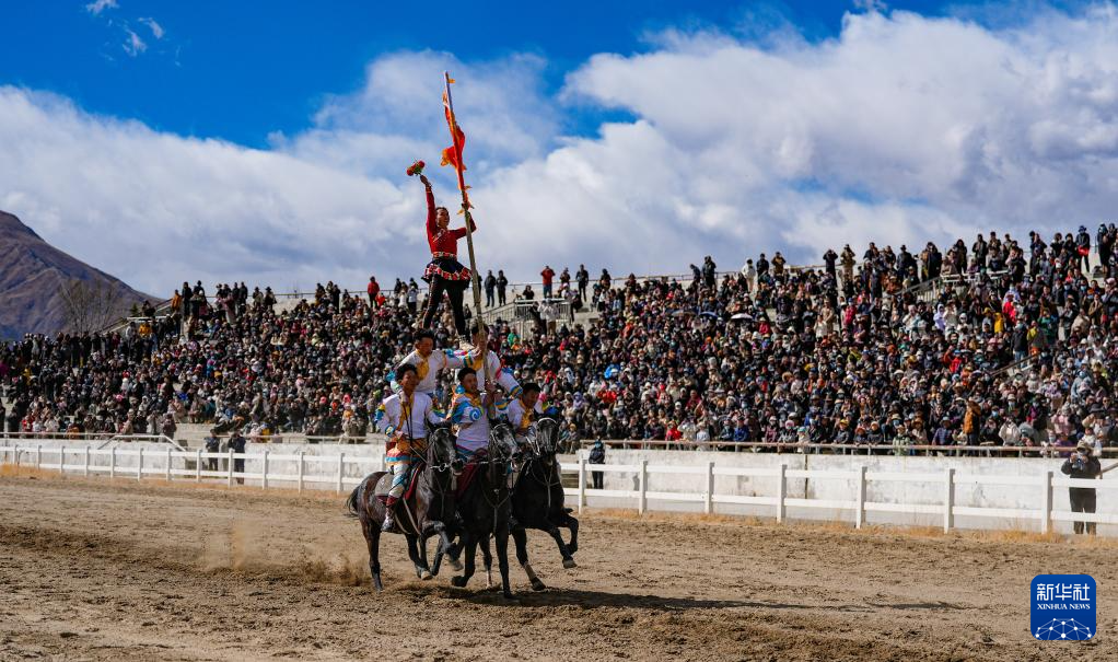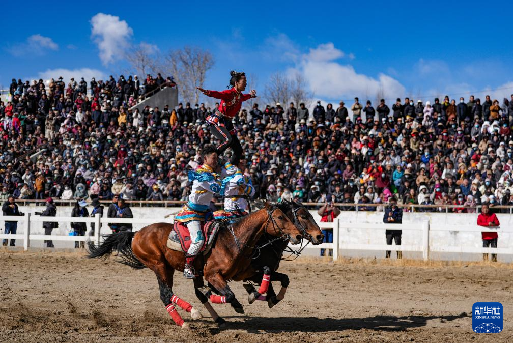 3月2日,馬術隊員在表演傳統(tǒng)馬術項目。新華社記者 晉美多吉 攝??