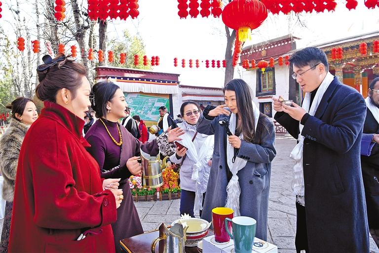 ?。ㄏ罗D(zhuǎn)第二版)(緊接第一版) 來(lái)自西安的曹女士剛體驗(yàn)完青稞酒又被工作人員遞上來(lái)的精美文創(chuàng)禮品吸引了眼球。她感嘆:“來(lái)這過(guò)藏歷新年,既能感受傳統(tǒng)藏歷新年的民俗活動(dòng),又能把藏文化帶回家,這樣的新年太有意義了!”