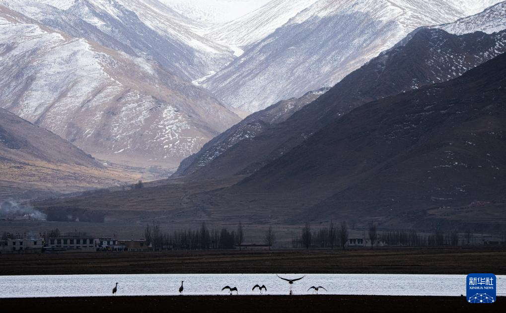 每年冬季,大批黑頸鶴在西藏拉薩市林周縣虎頭山水庫安家越冬。虎頭山水庫周邊的沼澤地、湖泊及河灘為黑頸鶴提供了理想的越冬環(huán)境。