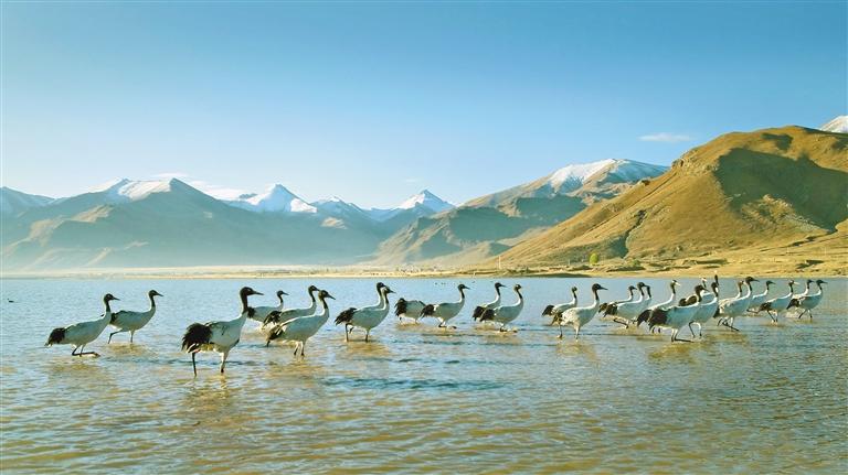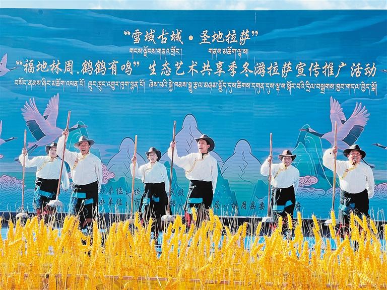 當(dāng)溫暖的陽(yáng)光輕柔地灑在拉薩河谷,黑頸鶴清脆的鳴叫聲喚醒了林周濕地寧?kù)o的清晨。“福地林周·鶴鶴有鳴”生態(tài)藝術(shù)共享季之“冬游拉薩”宣傳推廣活動(dòng),以歌舞表演、生態(tài)主旨演講、黑頸鶴攝影作品展、鶴文化專(zhuān)家座談等,融合了生態(tài)、藝術(shù)與文化的盛宴,讓人在雪山、湖泊與鶴影交織的詩(shī)意中,感受“冬游拉薩”的獨(dú)特魅力。