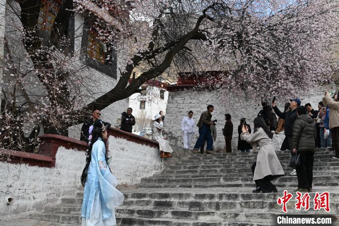 近日,隨著氣溫回升,西藏拉薩迎來爛漫春日。羅布林卡、宗角祿康公園、帕邦喀等地,桃花、紅葉李競相綻放。粉嫩的花瓣在微風中輕輕搖曳,與傳統(tǒng)的藏式建筑相互映襯,構(gòu)成一幅絕美的春日畫卷。暖陽下,市民和游客漫步其間,沉醉于這爛漫春色。繁花不僅扮靚了拉薩,也為這座城市增添了生機與活力,吸引著八方來客感受高原春天的獨特魅力 。圖為帕邦喀桃花盛開。貢嘎來松 攝