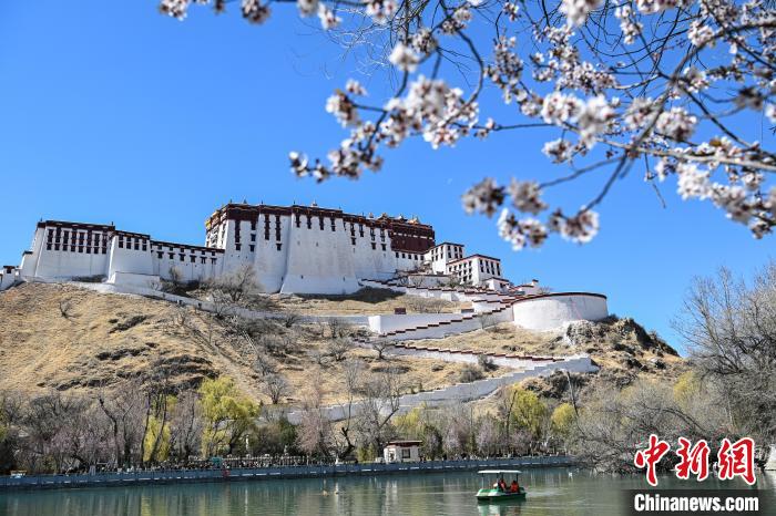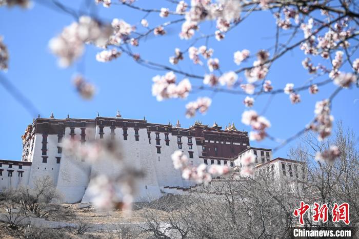 圖為帕邦喀周圍盛開的桃花和遠處的布達拉宮。貢嘎來松 攝