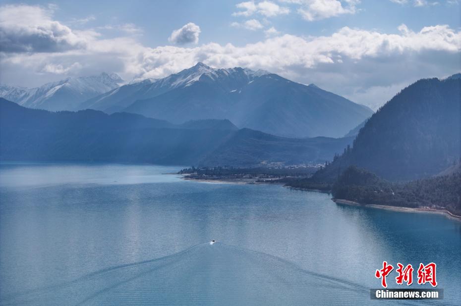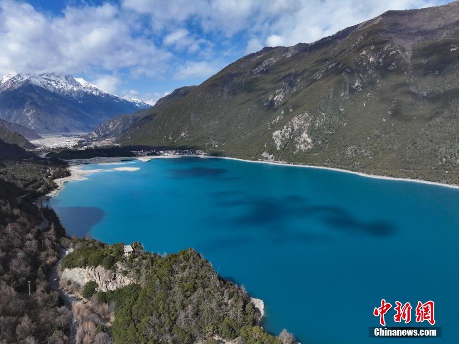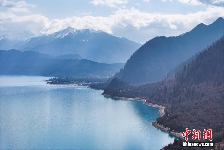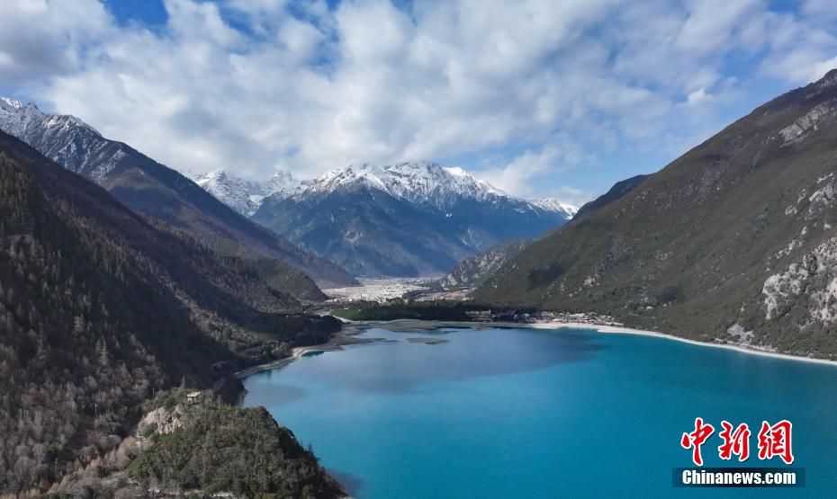 3月30日,航拍巴松措春日風(fēng)景。巴松措又名錯高湖,位于西藏自治區(qū)林芝市工布江達(dá)縣,是西藏首個自然風(fēng)景類國家5A級旅游風(fēng)景區(qū)。從空中俯瞰巴松措,碧藍(lán)的湖水被雪山、森林環(huán)繞,宛如鑲嵌在群山間的“藍(lán)寶石”。(無人機(jī)照片)中新社記者 馬銘言 攝