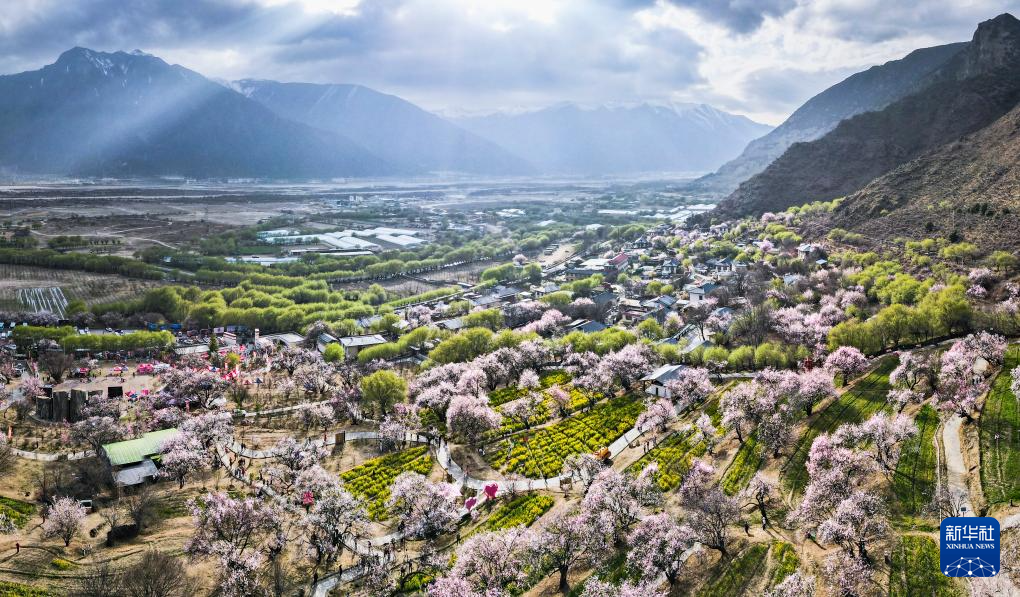 這是在林芝市巴宜區(qū)嘎拉村拍攝的桃花(3月29日攝,無人機全景照片)。新華社記者 齊芷玥 攝