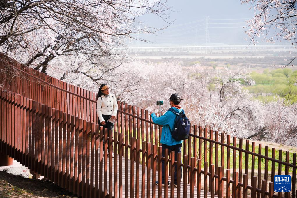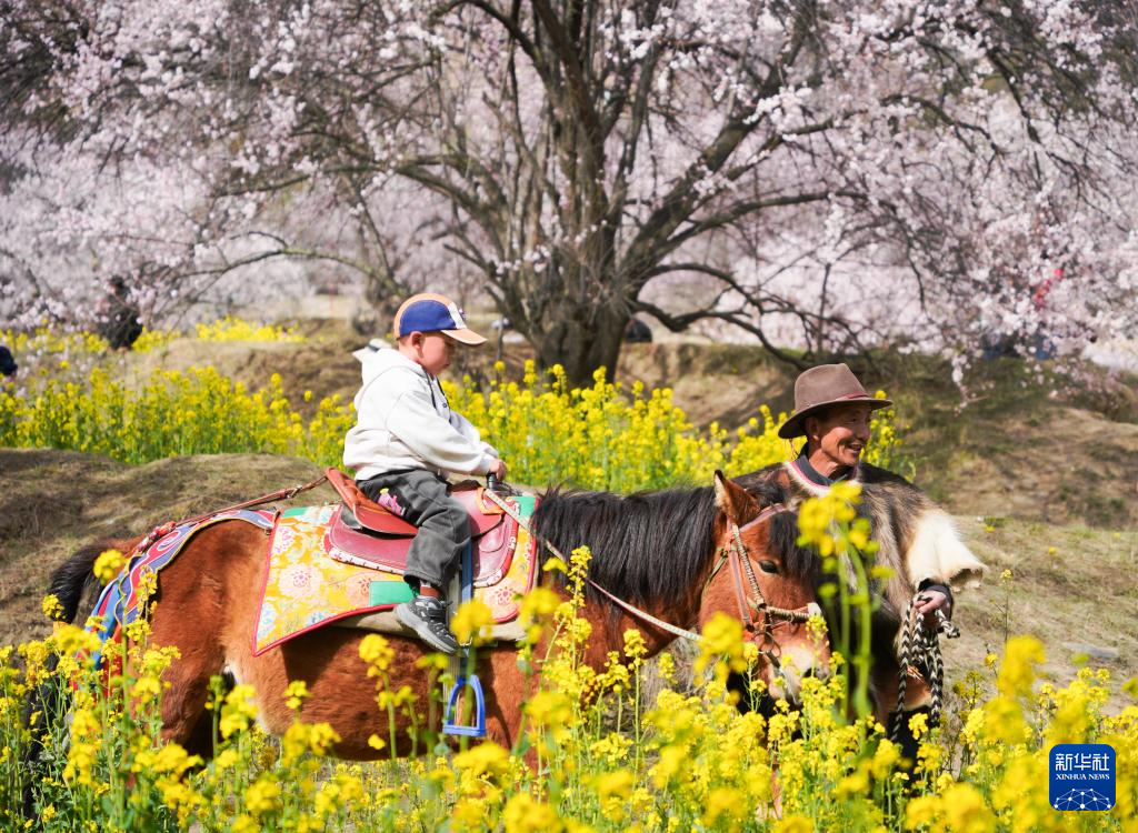 3月29日,游客在林芝市巴宜區(qū)嘎拉村賞花游玩。新華社記者 齊芷玥 攝 ??
