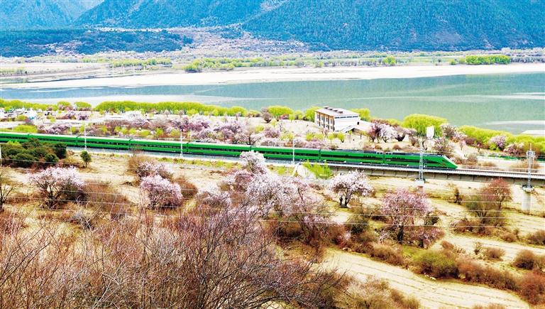 3月下旬至4月,西藏拉薩至林芝鐵路(拉林鐵路)沿線綿延的野生桃花林盛開(kāi),高原列車穿行在桃花海間,成為拉林鐵路春天最美的點(diǎn)綴。