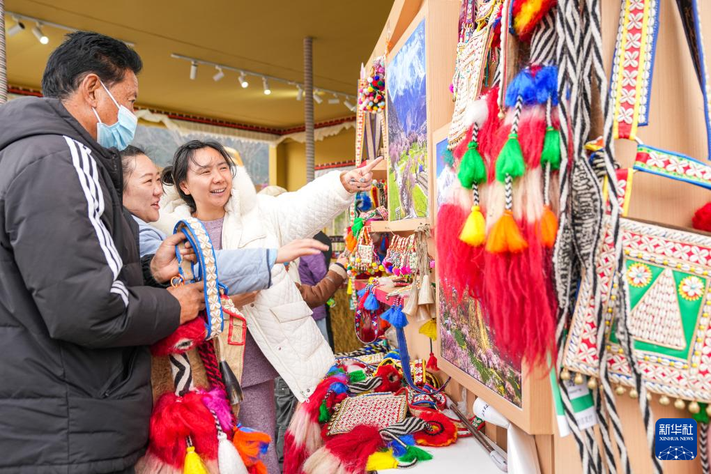 4月3日,游客在林芝市工布公園選購當?shù)靥禺a(chǎn)。新華社記者 丁增尼達 攝