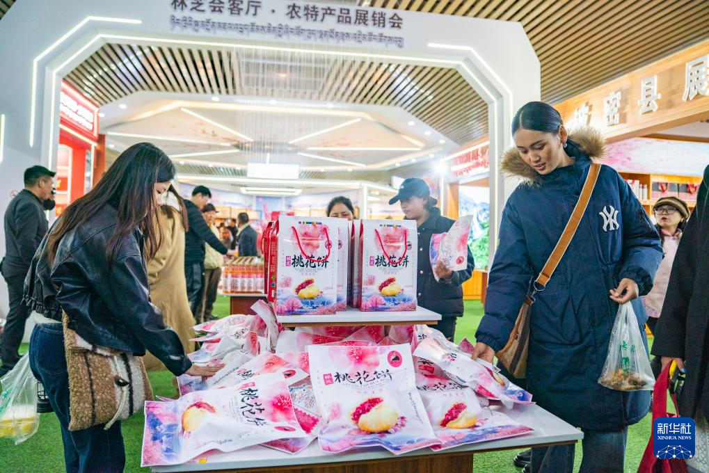 4月3日,游客在林芝市工布公園選購桃花餅。新華社記者 丁增尼達 攝