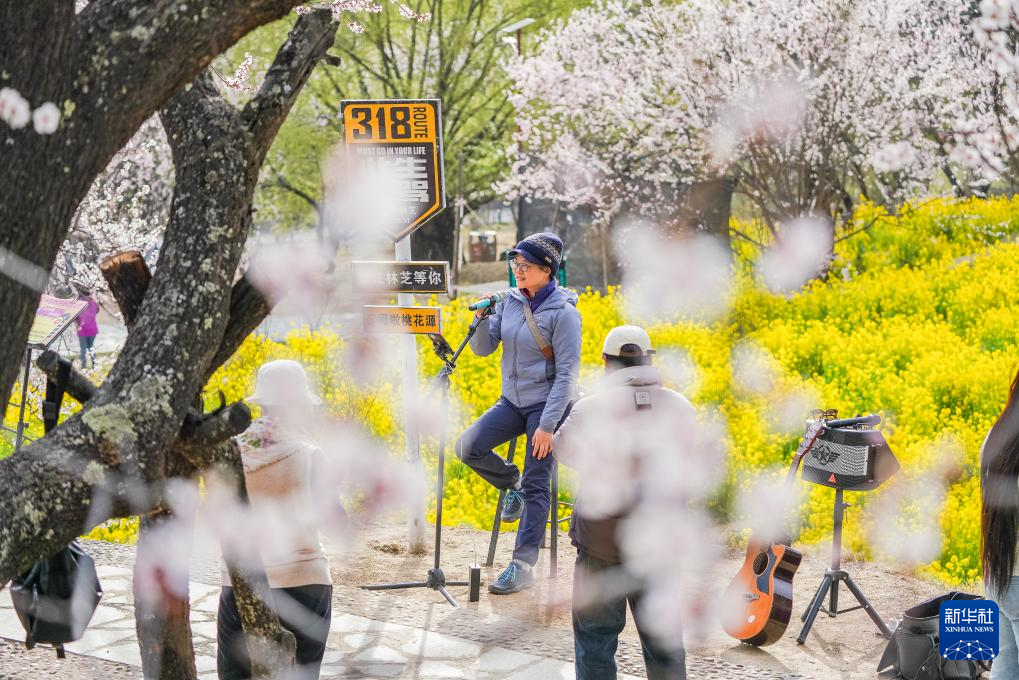4月2日,游客在林芝市嘎拉村唱歌。新華社記者 丁增尼達 攝