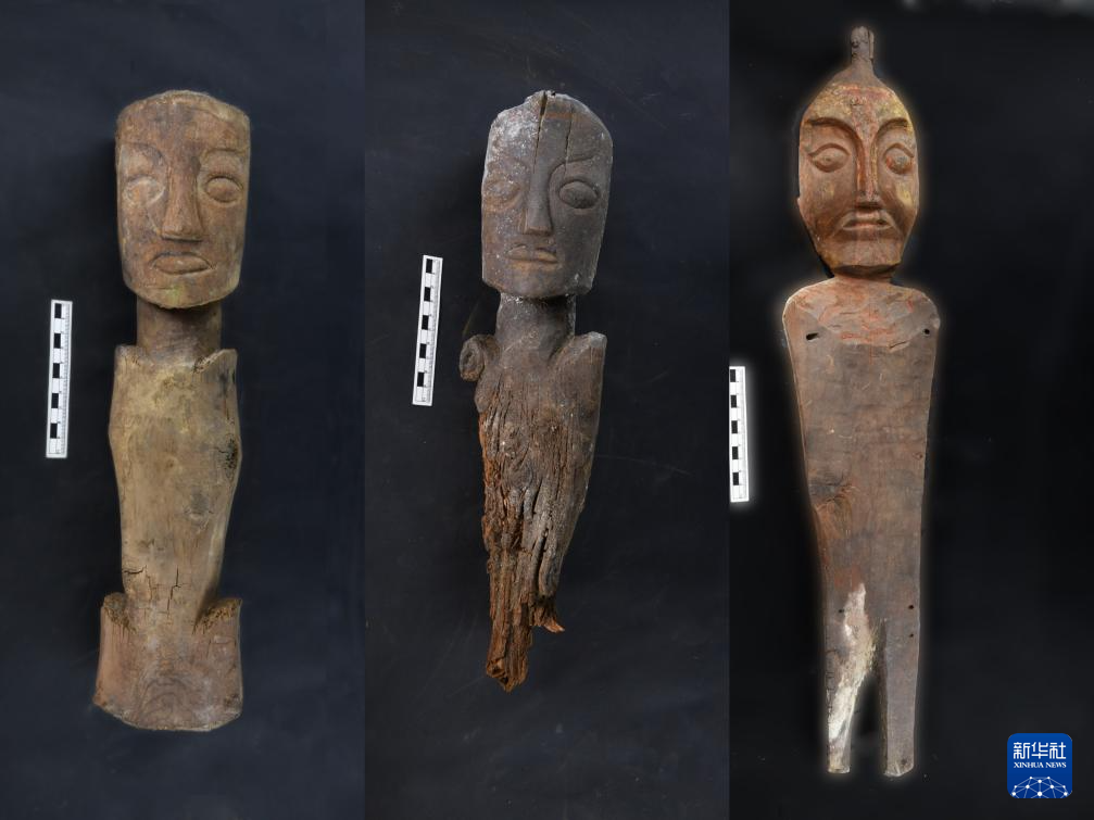 桑達隆果墓地出土的木俑。(西藏自治區(qū)文物保護研究所供圖)