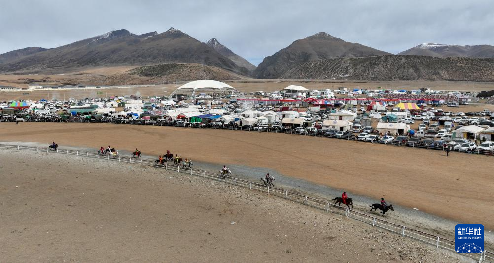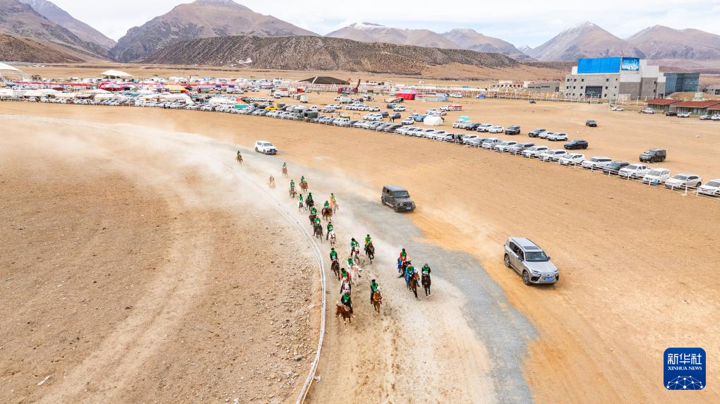 4月27日,第二屆東日馬超邀請(qǐng)賽比賽現(xiàn)場(chǎng)(無人機(jī)照片)。新華社記者 晉美多吉 攝