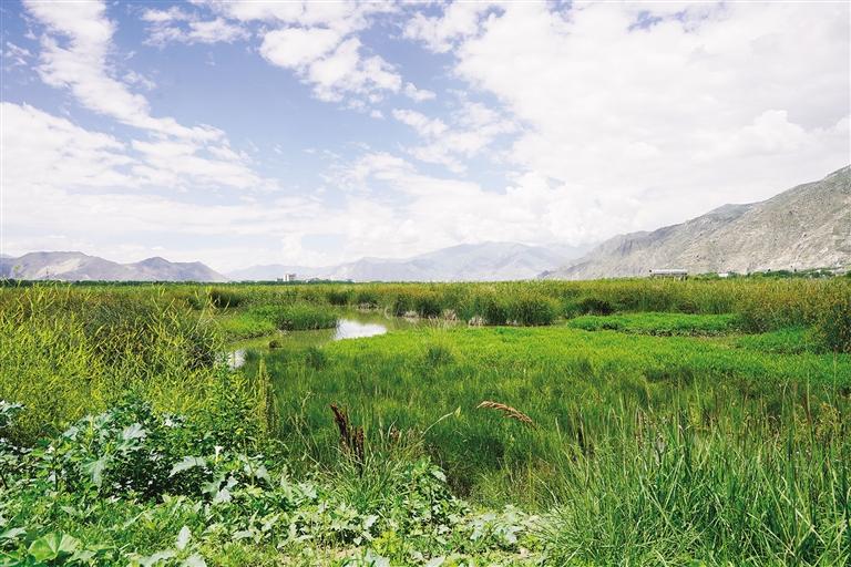 五月的拉薩,雨水濕潤了整個大地。早晨的陽光透過層層云霧,灑在郁郁蔥蔥的拉魯濕地上。她仿佛一位佳人,身披翠綠的薄紗,靜靜地佇立在那里,等待著人們與她在初夏撞個滿懷。