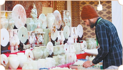 巴基斯坦客商在雅礱物交會布置展臺。次仁龍布攝