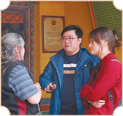 記者在敏珠林寺采訪澳大利亞游客亨麗埃塔·曼寧(左一)。記者 鮮 敢攝