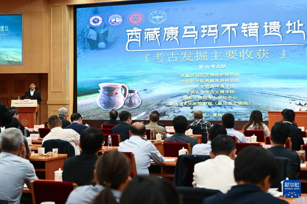4月23日,聯(lián)合考古隊領(lǐng)隊夏格旺堆在“2024年度全國十大考古新發(fā)現(xiàn)”終評會現(xiàn)場向?qū)<覍W(xué)者和媒體介紹瑪不錯遺址相關(guān)情況。新華社記者 李賀 攝  ??