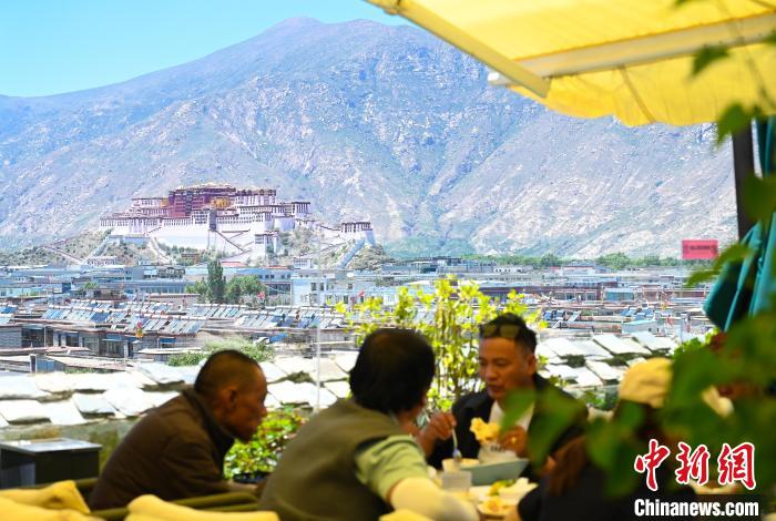 6月22日,拉薩市中心的一家觀景餐廳,可以眺望布達拉宮。中新社記者 趙朗 攝