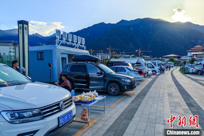 6月26日傍晚,西藏林芝宇拓公園自駕露營地內(nèi)停放著來自中國各地的進藏車輛,該營地設(shè)有兩處公共廚房和浴室,方便自駕游客休整。中新社記者 江飛波 攝