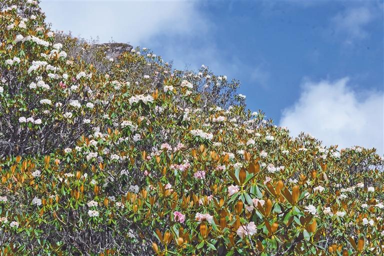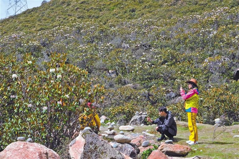 近日,林芝市巴宜區(qū)色季拉山上的小葉杜鵑和高山杜鵑爭相綻放,匯成一片花海,吸引游客駐足留影。