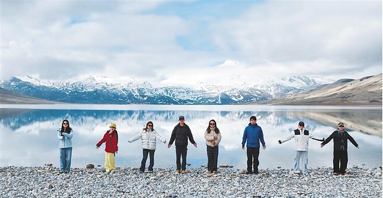 游客在崇巴雍錯(cuò)景區(qū)打卡拍照。 記者 旦增嘎瓦 攝