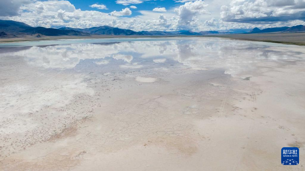 7月20日拍攝的位于西藏阿里地區(qū)革吉縣的鹽湖一景(無人機照片)。新華社記者 旦增尼瑪曲珠 攝 ??