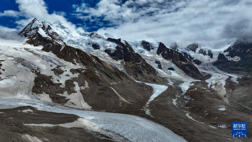 空中俯瞰祥格拉冰川(7月20日攝,無人機(jī)照片)。新華社記者 晉美多吉 攝